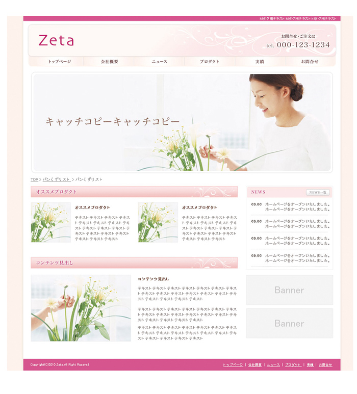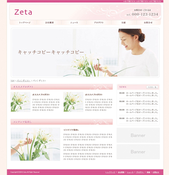 かわいいイメージのテンプレート。女性的なイメージを伝えたい方はこちら。
