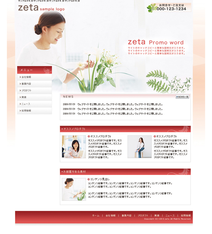 かわいいイメージのテンプレート。女性的なイメージを伝えたい方はこちら。